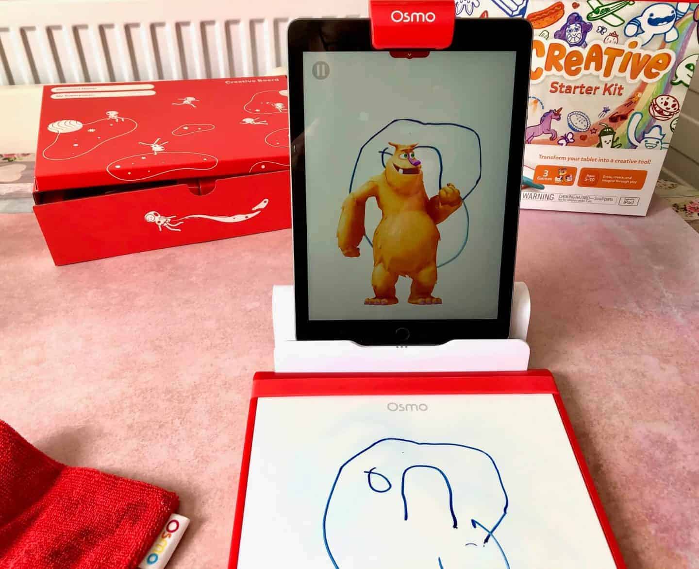Children draw or arrange play pieces. Mo the friendly Monster interacts with your kid in all 3 game. The included creative board and dry-erase markers are specially designed to best utilize the Osmo technology.